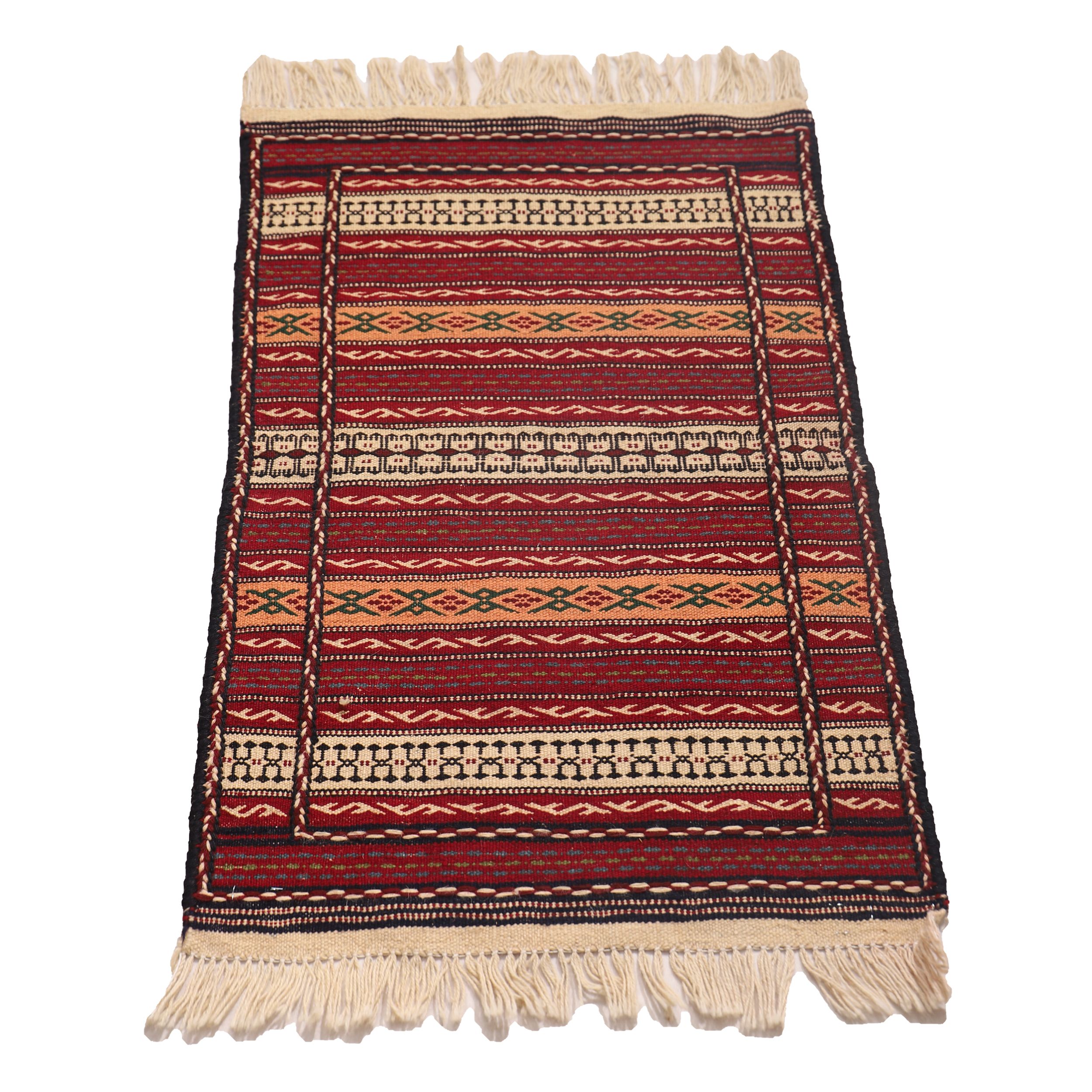 Kalat Naderi Kilim is a coarse-woven woolen kilim produced in the Kalat Naderi region. It is said that the finest Iranian palas (a type of flat weave) is made in two areas: Kalat Naderi and the Turkmen Sahra. Some experts believe that the migration of certain Lur tribes from western Iran to the border regions of Khorasan played a key role in the spread of palas weaving in this area.