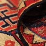 Verneh (also known as “Sileh Kilim” or “Soumak Kilim”) is a type of soumak weaving traditionally crafted without a pattern by the nomadic girls and women of the Arasbaran region. Verneh is essentially a pileless, single-sided kilim woven in the weft-wrapping technique, where the main weft passes through the warp threads while the colored wool yarns are wrapped around the warps to form the motifs.